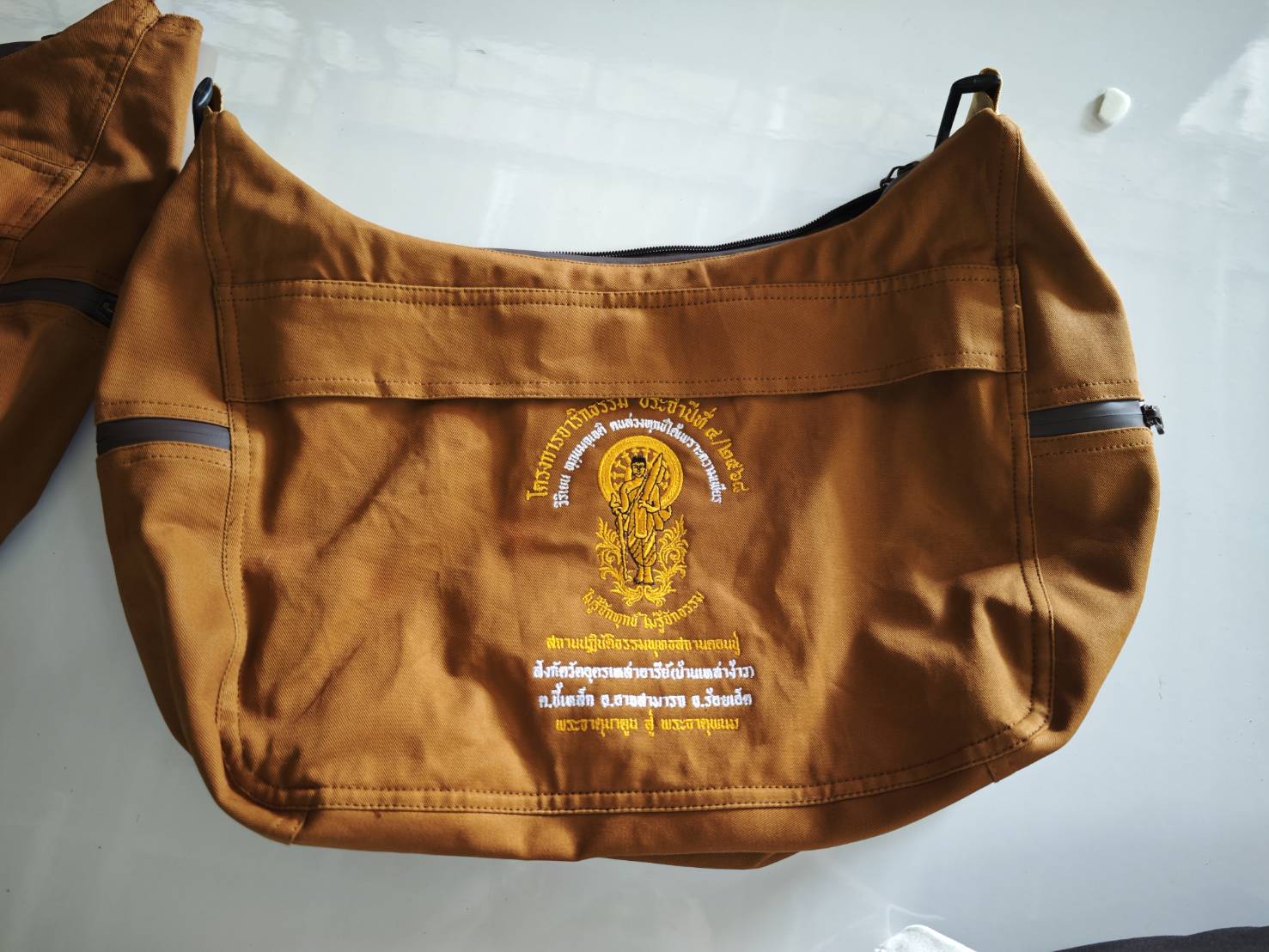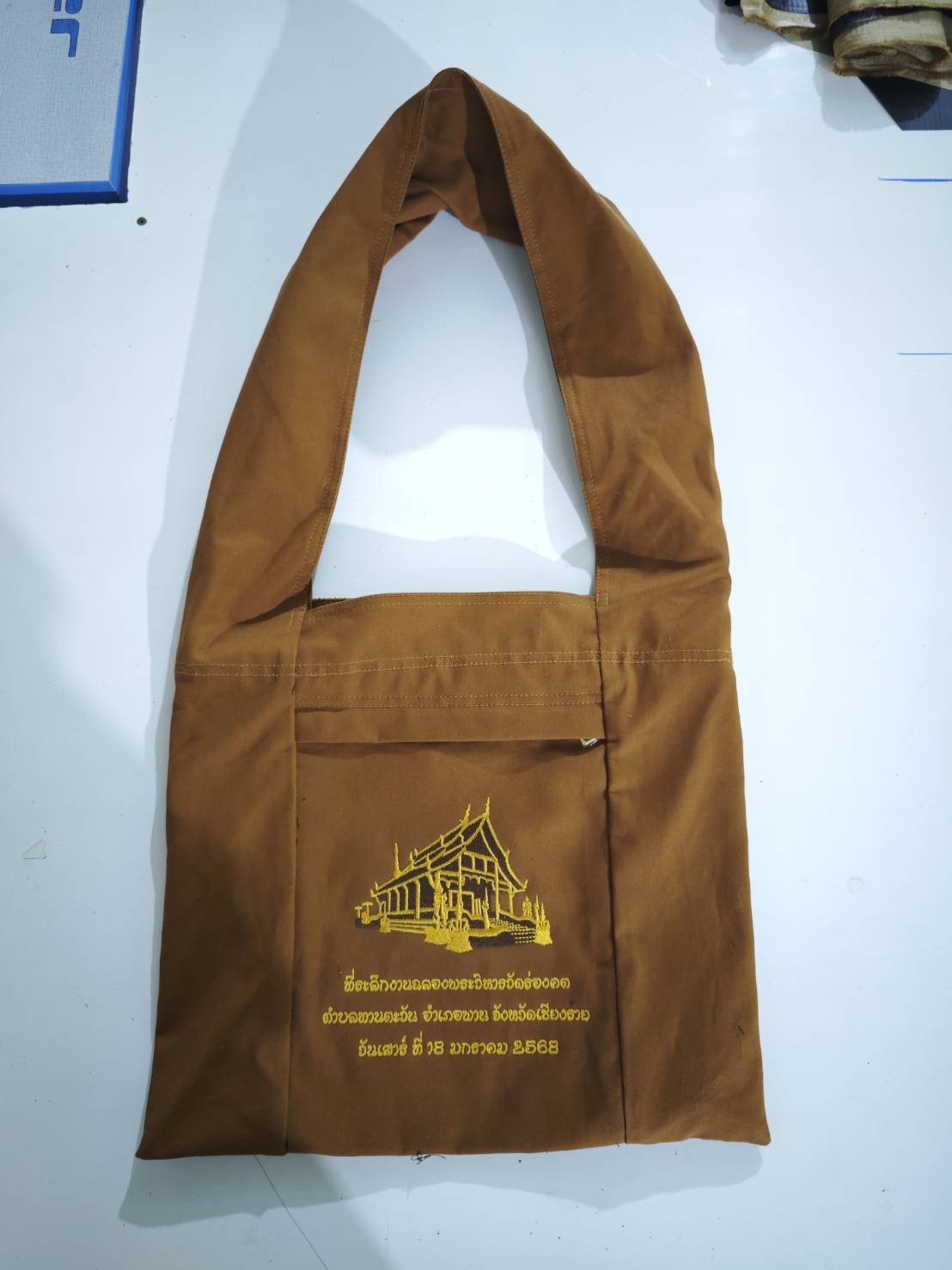 บริการปักลวดลายคุณภาพสูง เช่น โลโก้ วัด หรือข้อความธรรมะบนผ้าไตรอ